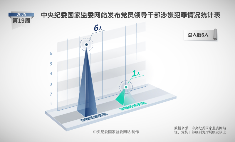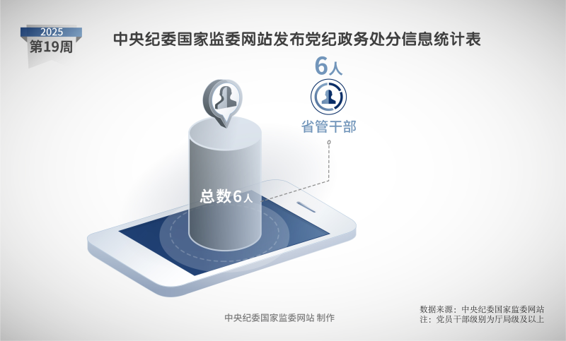 2025年第19周,中央紀委國家監(jiān)委網(wǎng)站共發(fā)布6條黨紀政務(wù)處分信息,均為省管干部。